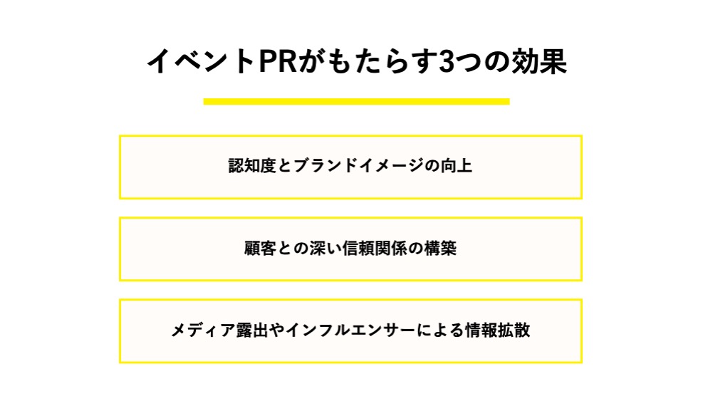 イベントPRを実施することで、企業は主に3つの大きな効果を期待できます。