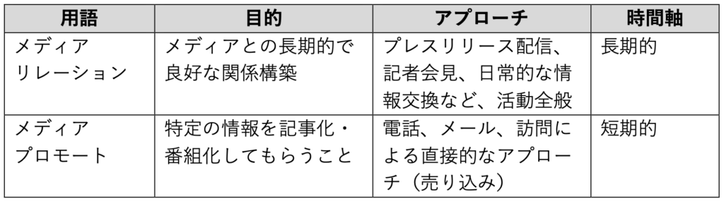 ◾️メディアリレーションとメディアプロモートの違い