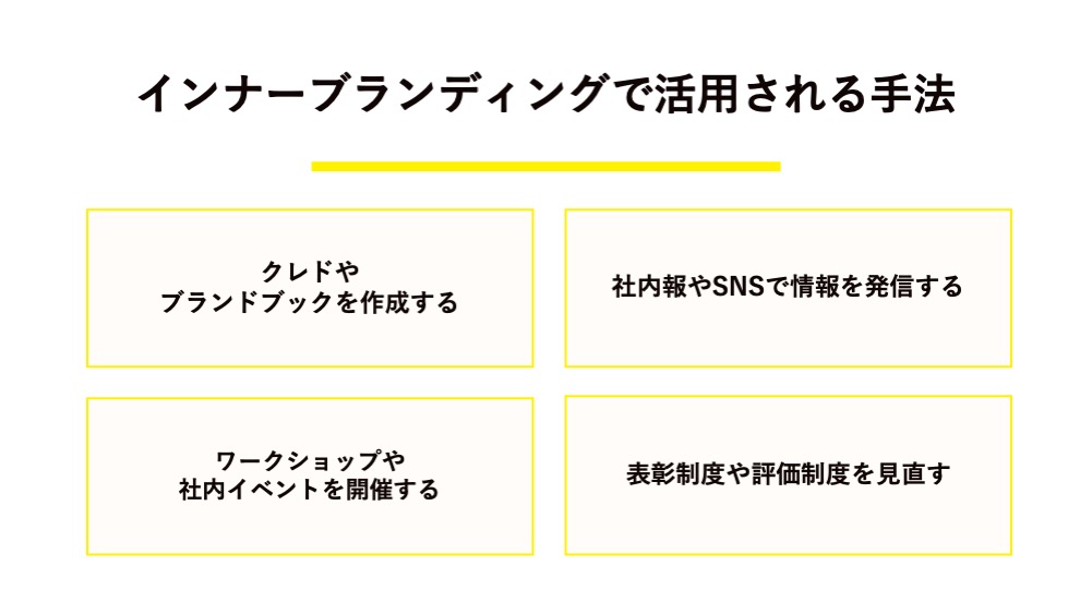 インナーブランディングを推進するためには、さまざまな手法があります。ここでは代表的なものをいくつか紹介します。