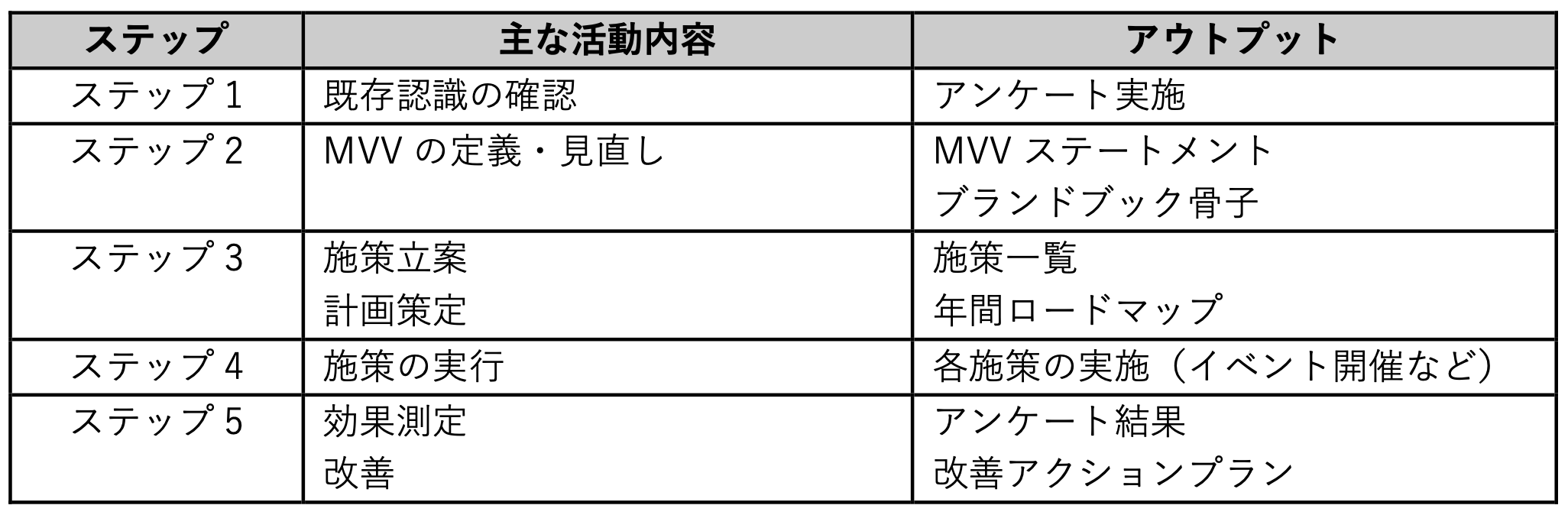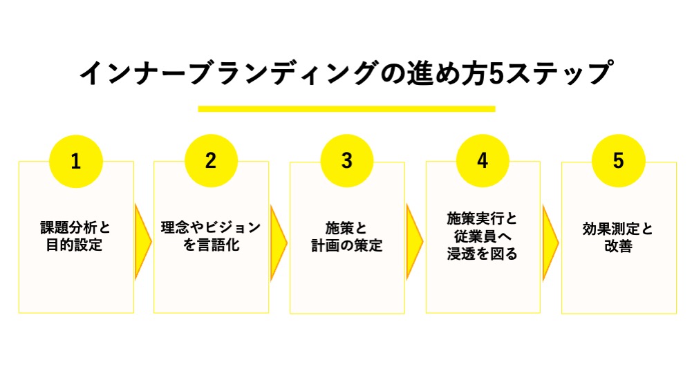 インナーブランディングを成功させるためには、戦略的かつ計画的に進めることが重要です。ここでは、基本的な5つのステップを紹介します。
