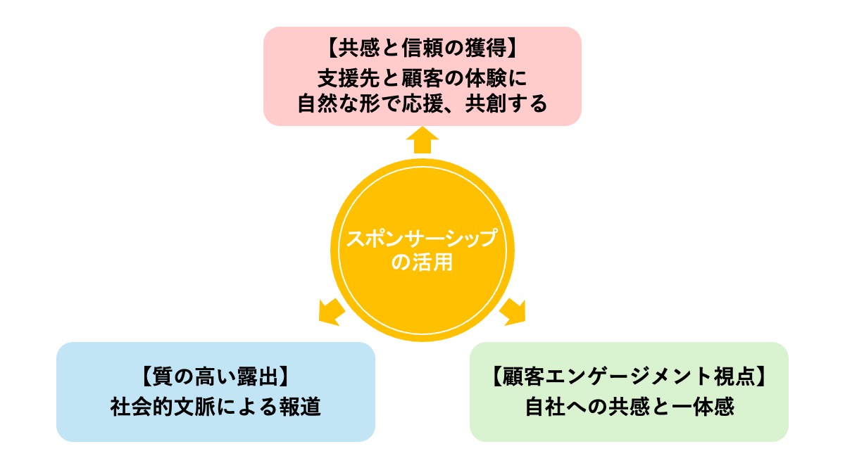 | スポンサーシップ | 姿勢の表明と深い共感の獲得 | 企業・支援先・社会 | 中長期的な信頼とブランド価値向上 |