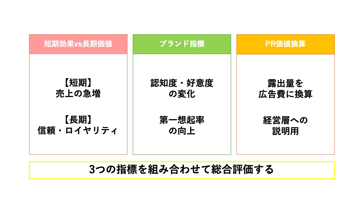 投じた費用に対してどれだけの効果があったのかを、短期的な数値で測るのが難しいという課題があります。広告のようにクリック数や購買件数を直接追跡できないため、費用対効果の説明に悩むケースも少なくありません。効果測定のためには、事前のブランド認知度調査やSNSでの定性的な反響分析など、独自の評価指標を設計する工夫が求められます。