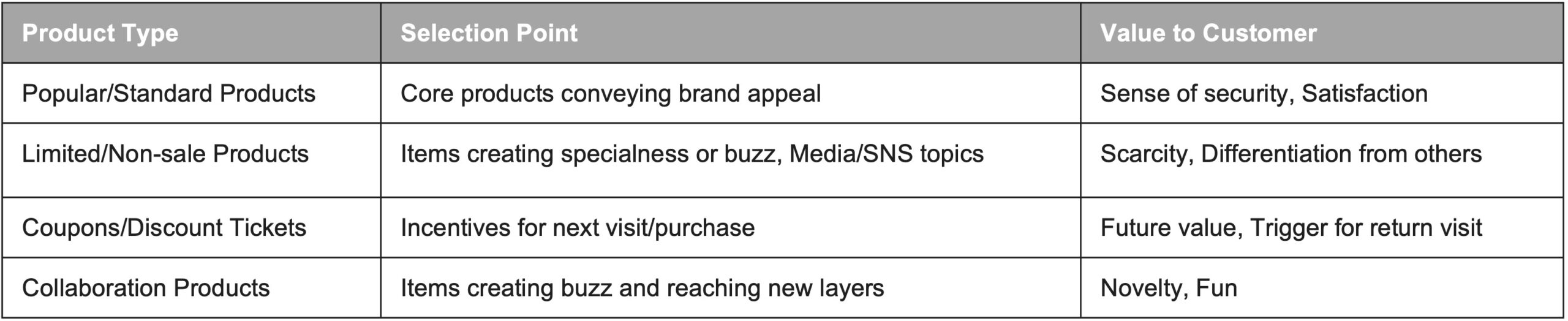 Lucky bags are not only about “value for money,” but also about “exclusivity.” By including limited-edition products that can only be obtained in lucky bags, collaboration items with other brands, and non-sale novelties, you can stimulate customers’ desire to own them and elicit high satisfaction. Providing the value of “This is only available in this lucky bag” will create appeal beyond the price and lead to increased brand loyalty.