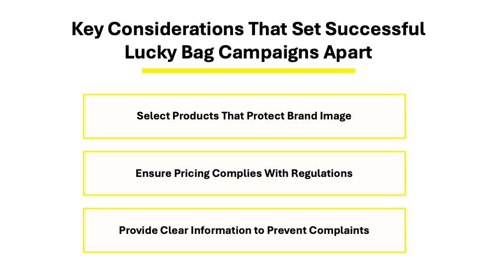Because many companies implement lucky bag initiatives, attention to detail will lead to differentiation from competitors. On the other hand, overlooking some important points may lead to a decline in brand image or unexpected troubles. Here, we will introduce three points to keep in mind during the planning stage.