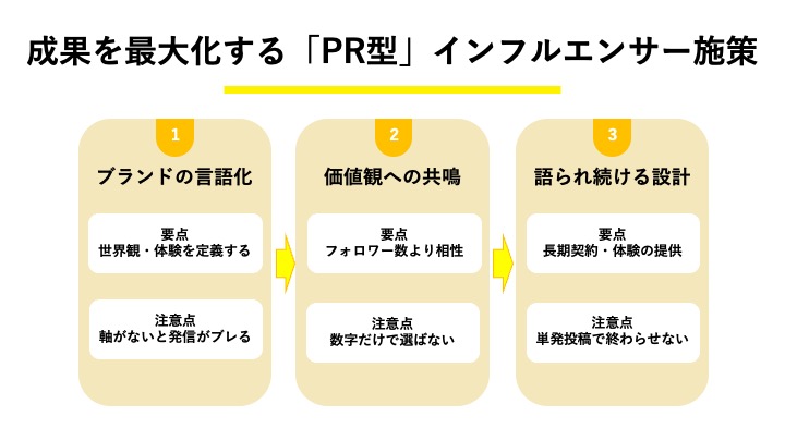 An influencer marketing strategy from a PR perspective aims to enhance brand equity through “empathy,” rather than merely being an advertisement. By treating influencers as partners and building trust, it becomes possible to disseminate high-quality information that resonates with society. Here are three steps to accumulate brand power as an asset, explained concisely.