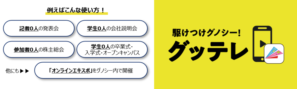 In order to save as many companies as possible that have lost opportunities to disseminate information due to the cancellation of events, and as a new way of disseminating information, we have prepared the online conference menu “Gutele Live” from the video content editing and distribution service “Gutele,” which allows information to be disseminated without visitors such as reporters and spectators.