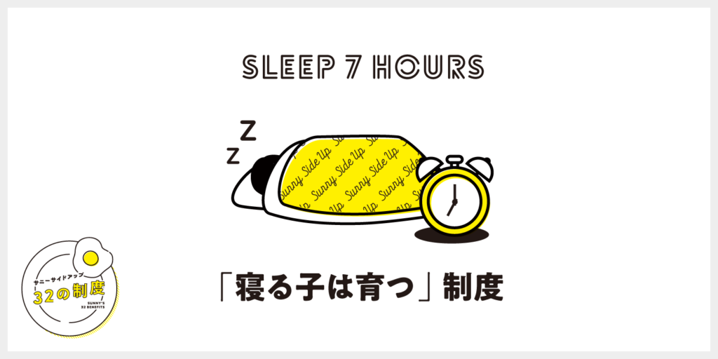 SUNNY SIDE UP GROUP Inc.’s unique employee benefits program, “32 Rules,” has been updated. Is Japan’s sleep duration the lowest in the world? The “Sleeping Children Grow” rule has been added to coincide with the Autumn Sleep Day.