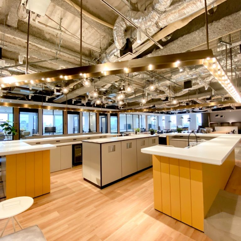 オフィスの中心にある“セントラルキッチン”は、さまざまな人やアイデアが集まる場所 = 次の時代の“たのしいさわぎ”が生まれる場所であり、わたしたちのブランド発信拠点です。