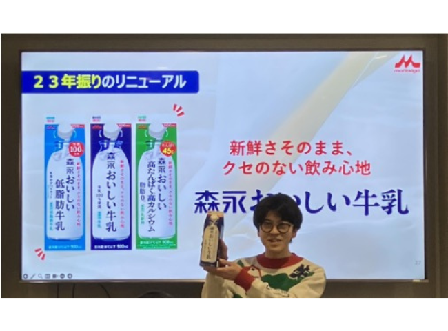「森永おいしい牛乳」シリーズの23年ぶりのパッケージリニューアルにおける理解促進および記事化による認知拡大・売上貢献を目的に、メディア向け発表会を実施。会場では、商品のリニューアル背景やリニューアルポイントに加え、生活者における牛乳の調査発表を行い、商品の発表だけに留まらず情報への付加価値を加えた。